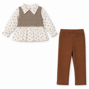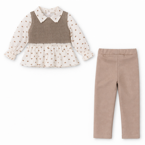 Krem Kadife Pantolonlu Süveterli 3 Lü Takım ( 2-3-4-5-6 Yaş )