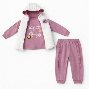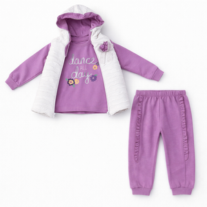 Mor Fırfır Detaylı Çiçekli Takım ( 2-3-4-5 Yaş )