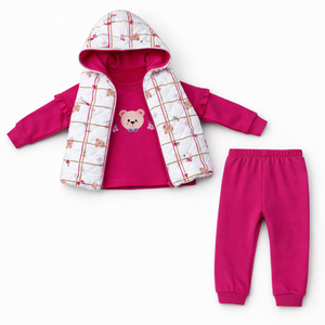 Pembe Fırfır Detaylı 3 Lü Takım ( 9-18-24 Ay )
