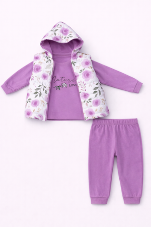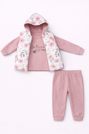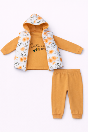 Turuncu Gül Desenli 3 Lü Takım ( 1-2-3 Yaş )