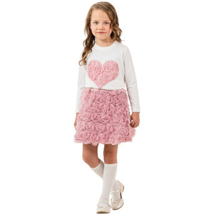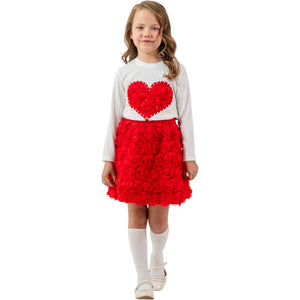 Kırmızı Kalpli Güllü Etekli Takım (2-3-4-5 Yaş)