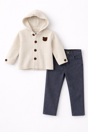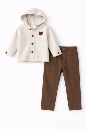Füme Kot Pantolonlu Gömlekli 2 Li Takım ( 2-3-4-5 Yaş )