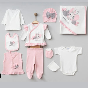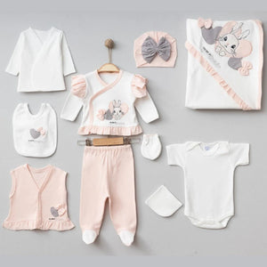 Kız Bebek 0-3 Ay Kalpli Tavşanlı 10Lu Hastane Çıkış Seti